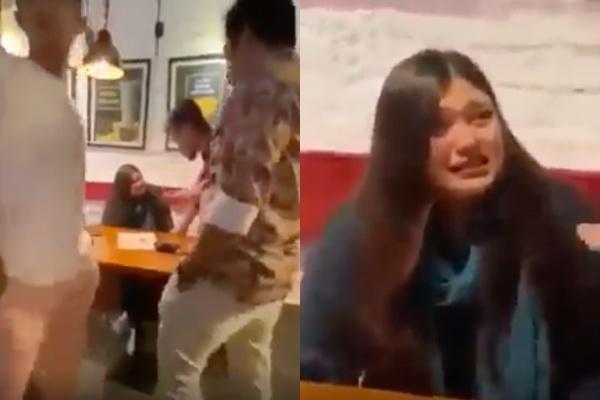 No vídeo, é possível ver a cara de desespero que a jovem faz enquanto é xingada pelos namorados.